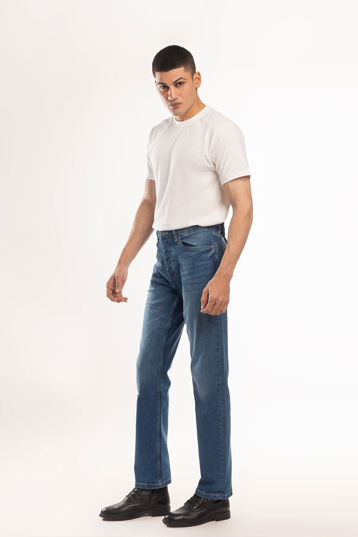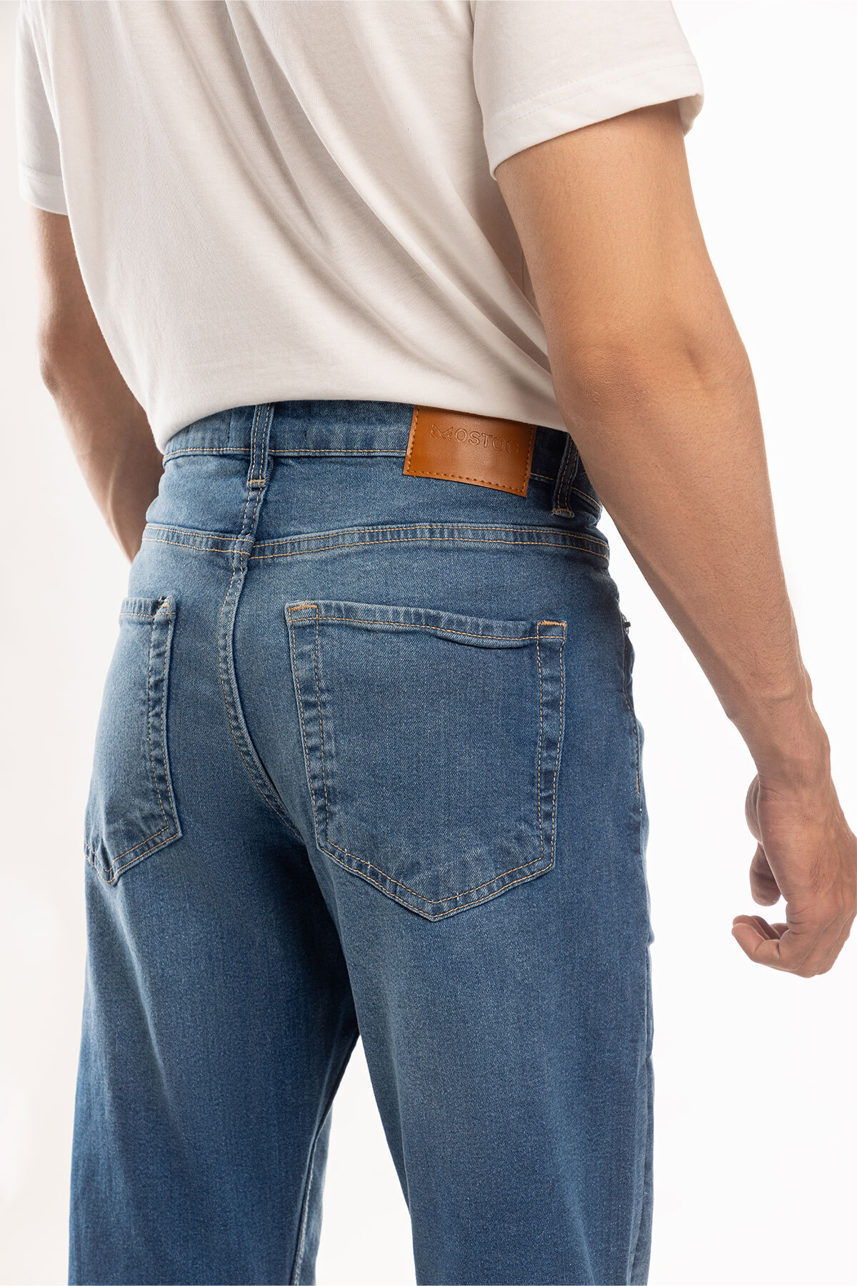 Mostog’s classic regular fit jeans offers comfort and allows the wearer to move freely. The blend of cotton and elastane adds to the comfort and offers minimal stretch. It has 3 front and 2 slip pockets at the back, providing ample space to keep necessary stuff. The button waist and button fly offer secure fastening. The brand’s name, ‘Mostog’ is engraved on the buttons providing a signature look and a fine finish to the classic jeans.