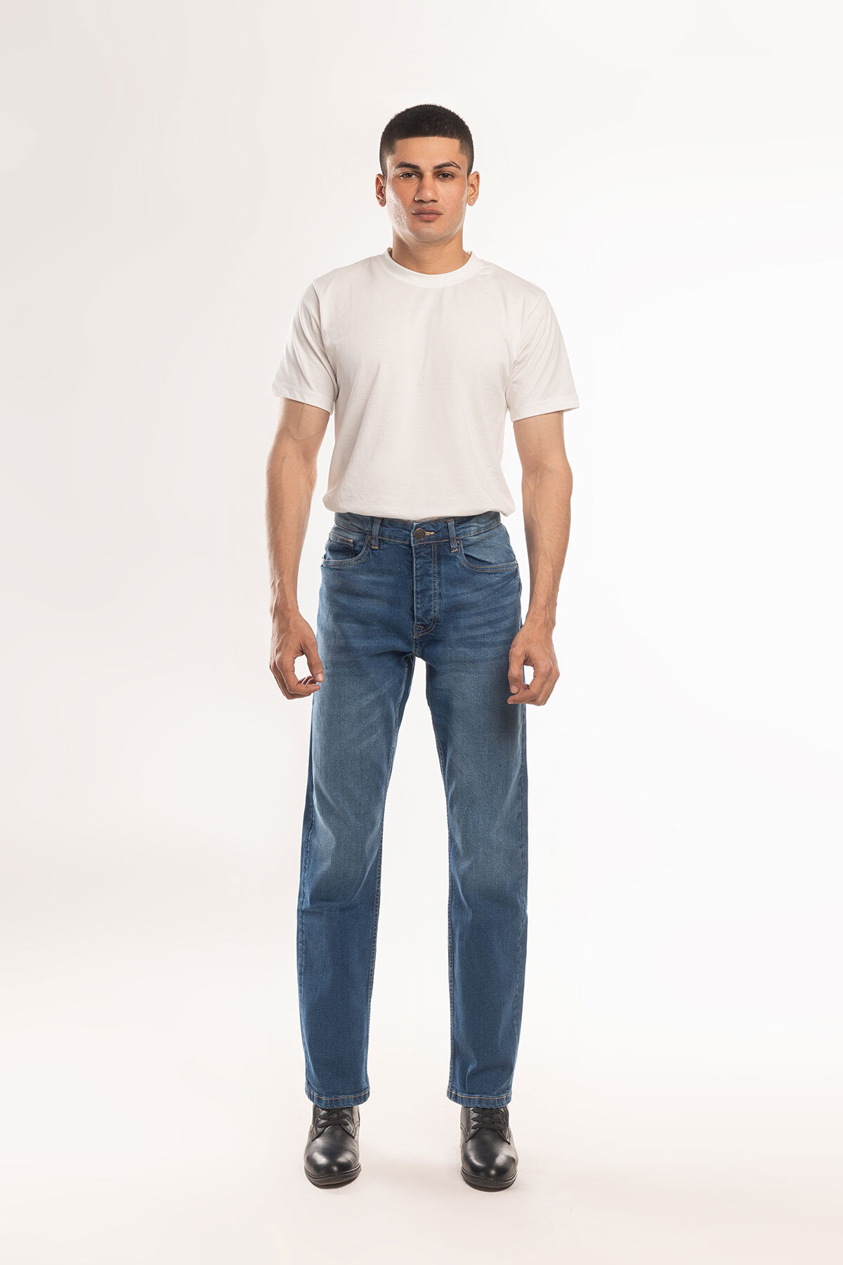 Mostog’s classic slim fit jeans offers comfort and allows the wearer to move freely. The blend of cotton and elastane adds to the comfort and offers minimal stretch. It has 3 front and 2 slip pockets at the back, providing ample space to keep necessary stuff. The button waist and button fly offer secure fastening. The brand’s name, ‘Mostog’ is engraved on the buttons providing a signature look and a fine finish to the classic jeans.